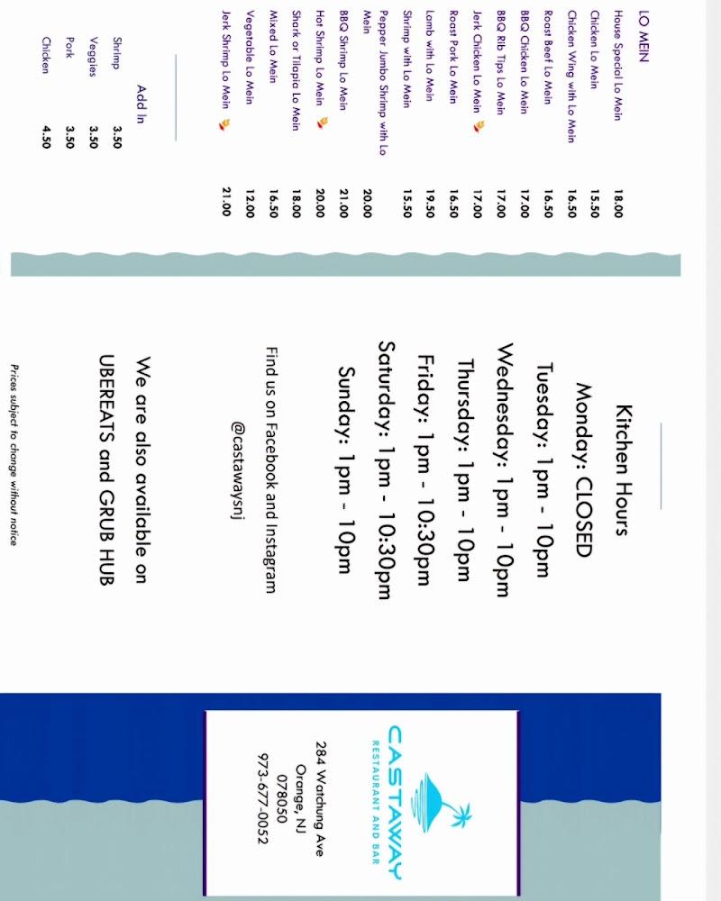 Welcome to Castaway Restaurant & Bar, where Caribbean flavors meet Chinese cuisine in a vibrant setting! Located at 284 Watchung Ave in the City of Orange, NJ, our restaurant offers a delightful experience for food lovers. Indulge in mouthwatering dishes while enjoying our extensive selection of cocktails, beers, and wines. With outdoor seating, live music, and a lively nightclub atmosphere, it's the perfect spot for a night out or a solo dinner. We ensure a relaxed, welcoming environment for everyone, including groups and the LGBTQ+ community. Visit us for delicious food, fantastic drinks, and memorable evenings!