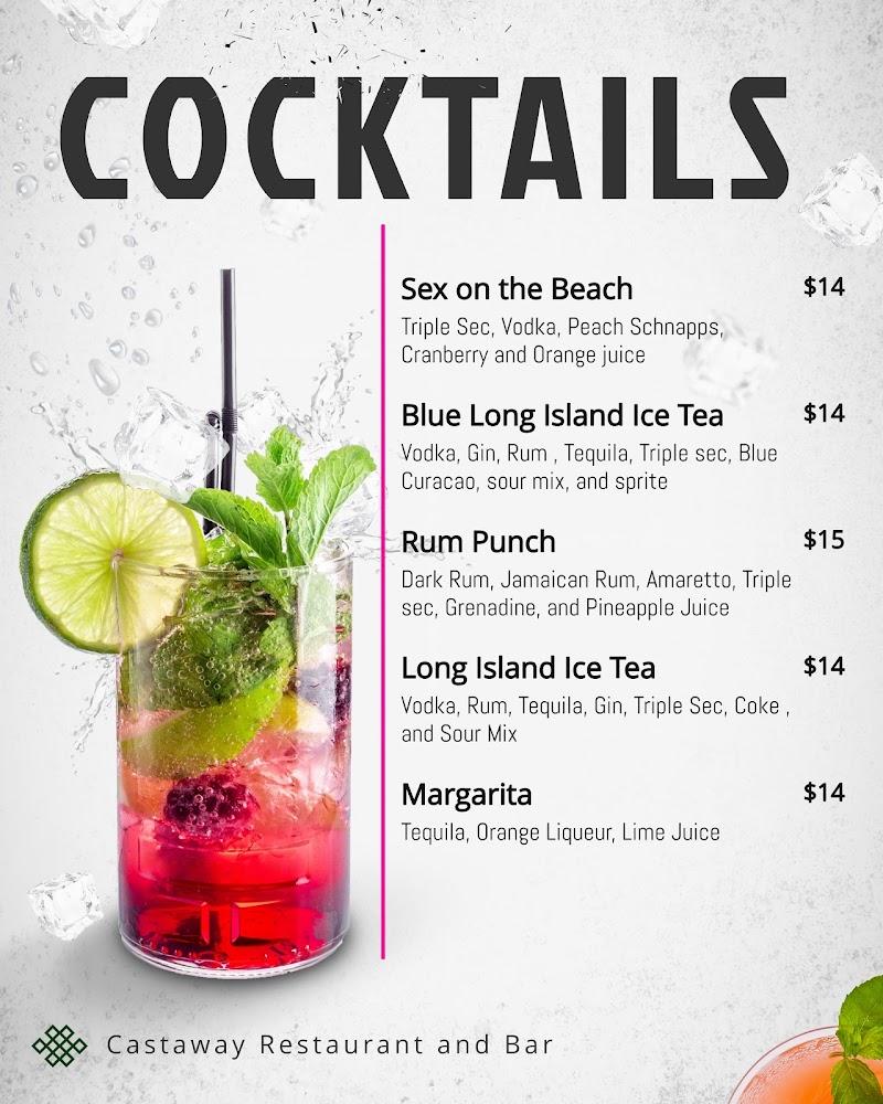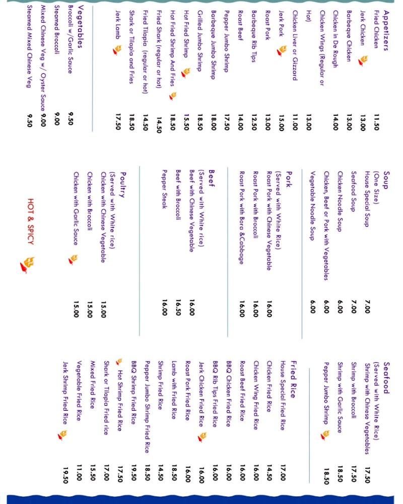 The menu at Castaway Restaurant & Bar features a wide range of dishes, highlighting the fusion of Caribbean and Chinese cuisine. Guests can enjoy enticing options like the House Special Lo Mein, flavorful barbeque chicken, and jerk pork. Appetizers like fried chicken and chicken wings are popular and perfect for sharing. Additionally, a variety of fried rice and seafood options cater to different tastes, ensuring something for everyone. The blend of flavors and generous servings make the dining experience memorable and satisfying.